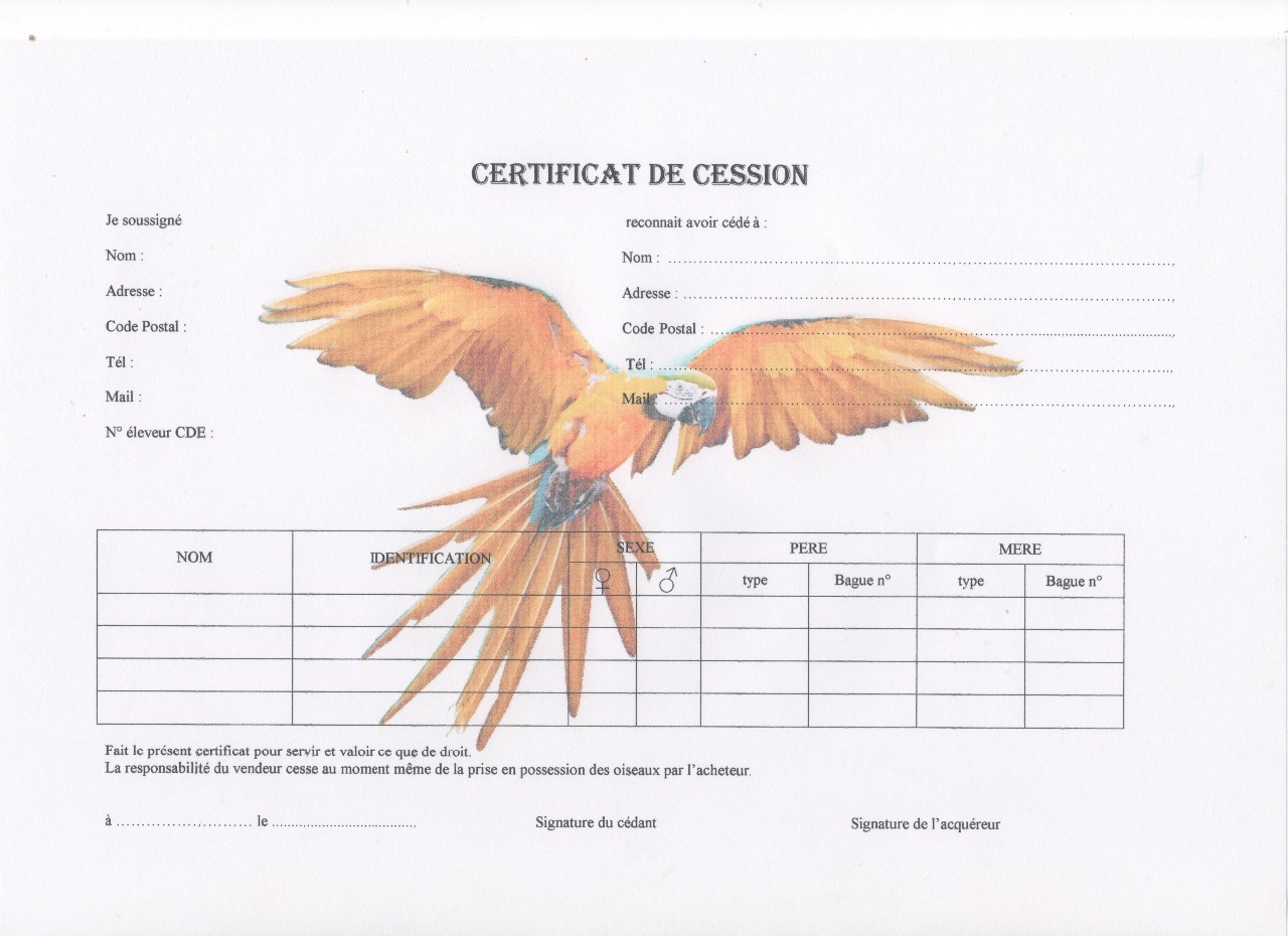 VENTE | CERTIFICAT DE CESSION | ELEVEUR | CDE | ACQUEREUR | VENDEUR